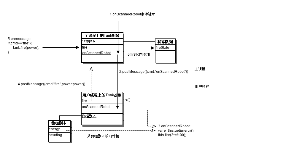 之前我们都是发送消息,让主线程的坦克对象收到消息后进行相应状态更新,但是一些 get 类的 API(例如 getEnergy),获取自身属性的 API,并不能通过发送消息去获取: