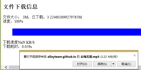 IE11 下表现也是很乖的,完全可以运行,便其不管什么文件都会提示是否保存