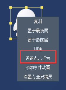 首先设置企鹅 logo 的点击行为,右击企鹅 Logo,选择 “设置点击行为”: