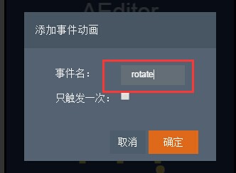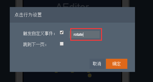 勾上触发自定义事件,然后填入要触发的事件名 “rotate”: