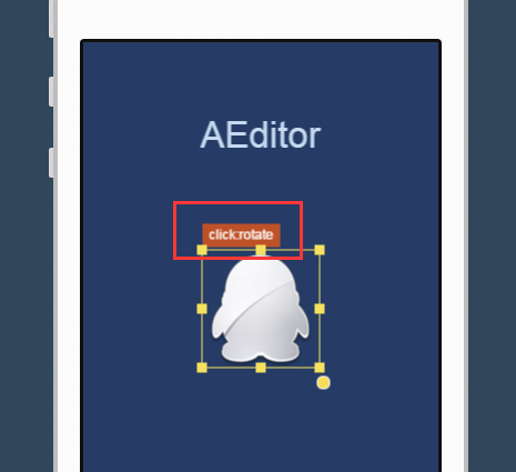 点击确定,此时可以看到企鹅 Logo 上有点击事件标识,点击企鹅会触发 rotate 事件: