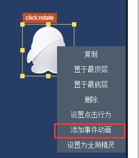 此时我们需要建立事件监听播放翻转动画,右击企鹅 Logo,选择添加事件动画: