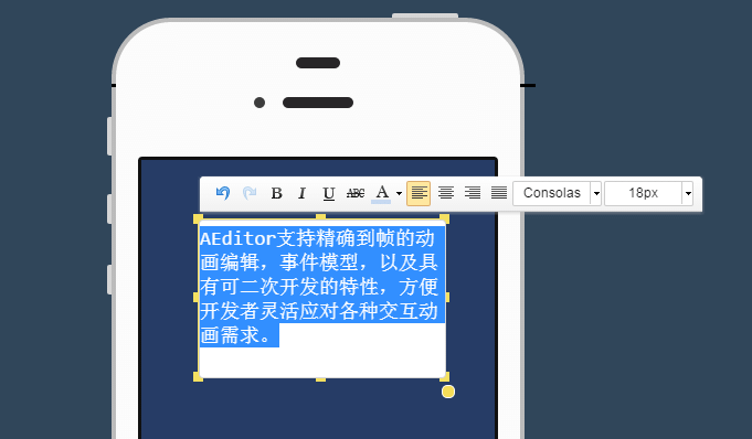 另外描述部分的动画制作过程大同小异,就不详述了,描述部分添加到 AEditor 的效果: