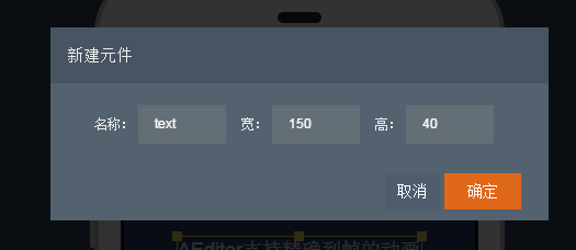 元件名称设置为 “text”,元件尺寸设置为 150*40: