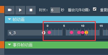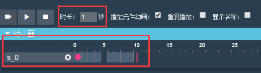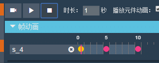 帧动画的时长默认是 6s,我们并不需要这么长的动画时间。所以我们选中该时间轴,把时长改成 1s,发现此时时间轴变短了,只有 1s 的动画时长: