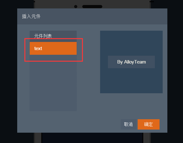 进入元件模式之后添加文字并设置为 “By Alloyteam”,文字颜色设置为淡黄,同时添加到时间轴。