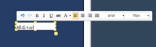 首先,点击 “文字” 按钮,添加文本到 AEditor,并改变输入内容为 AEditor: