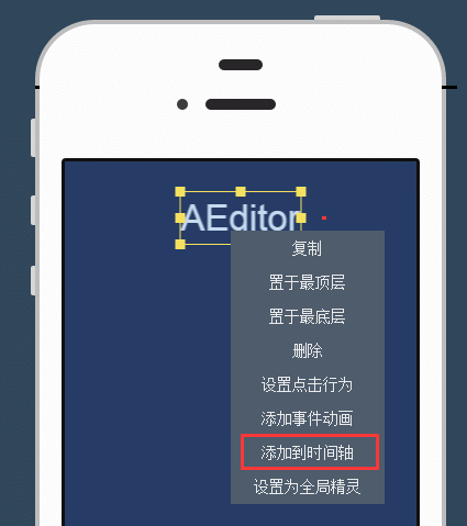 要对文字应用渐变向下的动画,我们需要把文字添加到时间轴。右击文字,选择” 添加到时间轴 “: