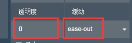 然后选择第一个关键帧,透明度设置为 0,缓动设置为 easeout: