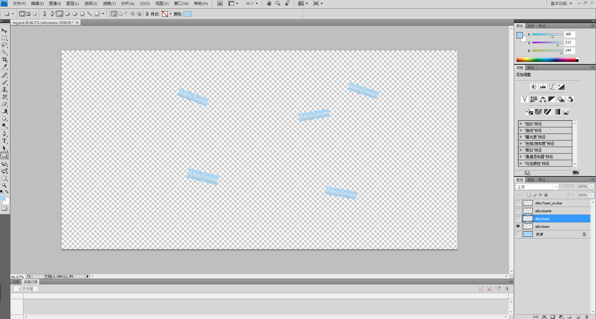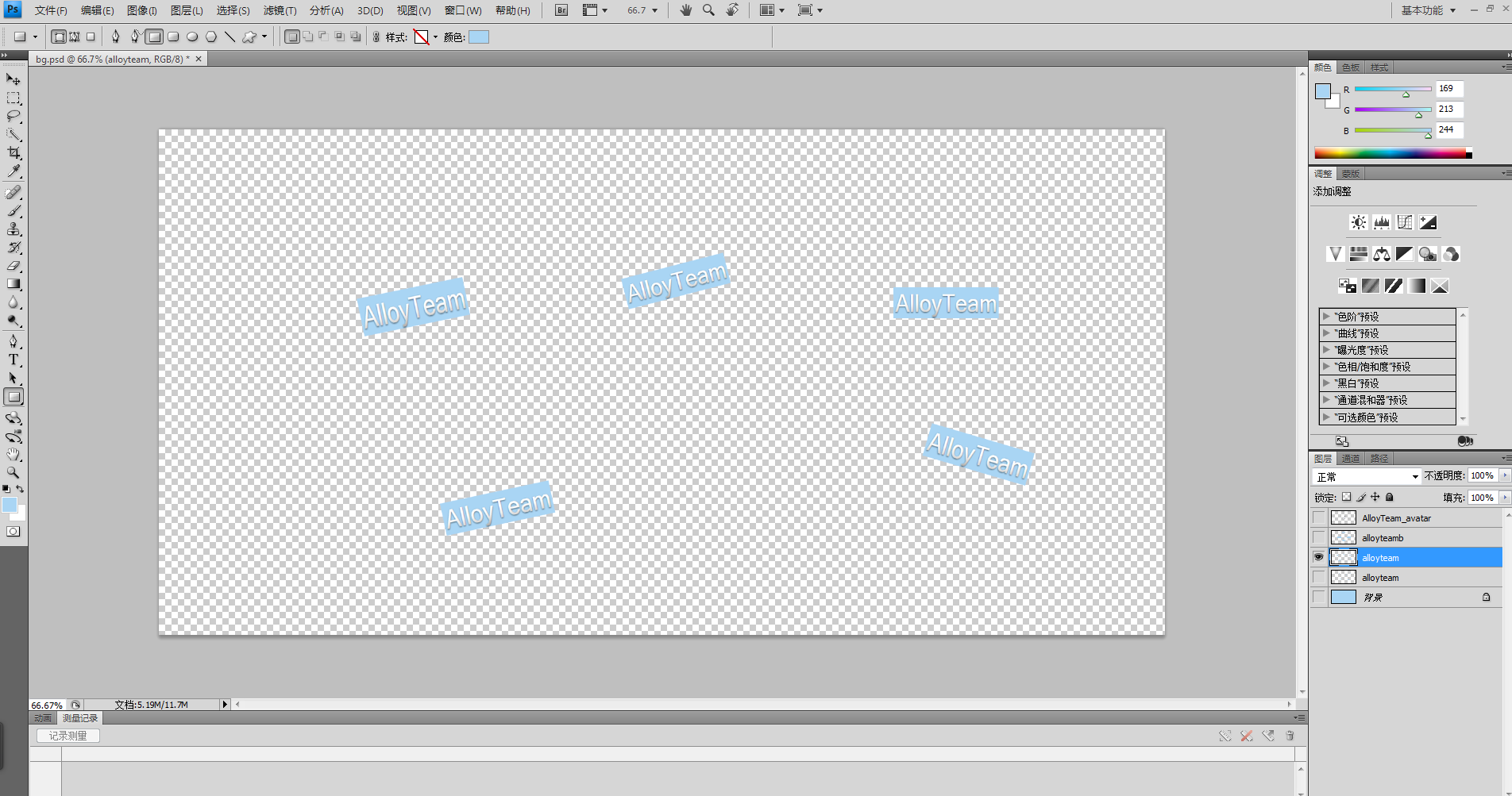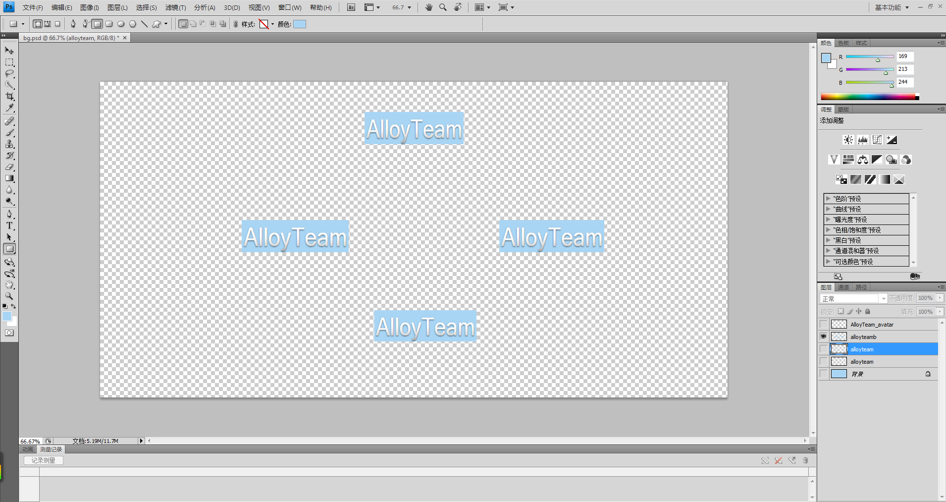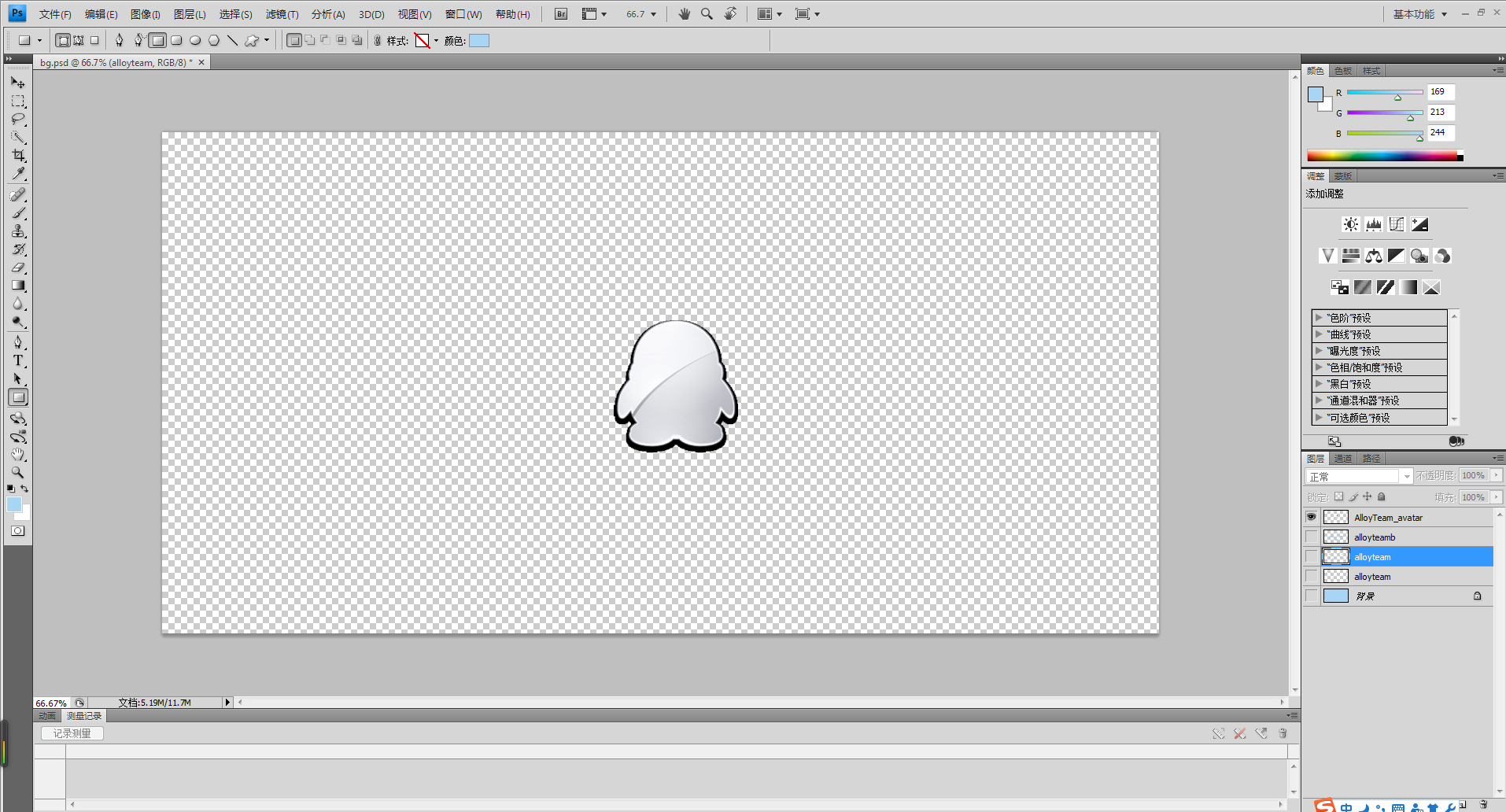 还简单截了“alloyteam” 的图,然后通过 ps 决定了他们的大小和位置,分别合并成图层