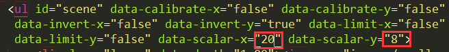 然而运动量的改变不止依赖 data-depth,还依赖于 scalarX 和 ScalarY 的值和父容器的尺寸。计算公式为 xMotion = parentElement.width  * (scalarX / 100) * layerDepth,也就是说,当 data-depth 的值为 0.20,scalarX 为 10,scalarY 为 10,父容器尺寸为 1000px 500px 时,它在 x 方向的运动量为 20,在 y 方向的运动量为 10。