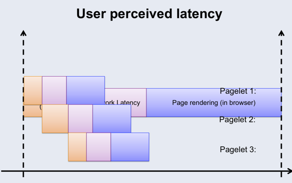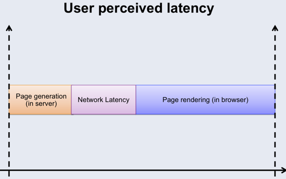 传统的渲染方式,用户所感知的页面延时如下图,从页面生成,网络延迟到页面渲染都是串行进行的。