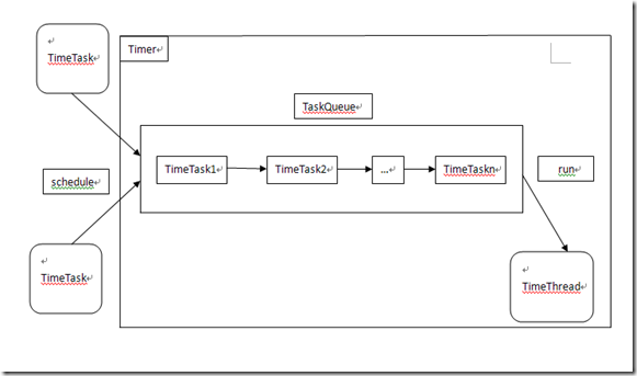 Timer:一个 Task 任务的调度类,和 TimerTask 任务一样,是供用户使用的 API 类,通过 schedule 方法安排 Task 的执行计划。该类通过 TaskQueue 任务队列和 TimerThread 类完成 Task 的调度。