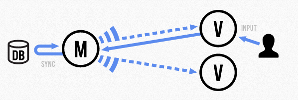 以上是基本视图切分,没看到任何 MVC 的影子,可以看出基本代码组织方式就是这样,像是一个一个相对高内聚的小型界面组件。然后下面是数据流,顺序是从左到右。这个顺序是由什么来决定的呢?