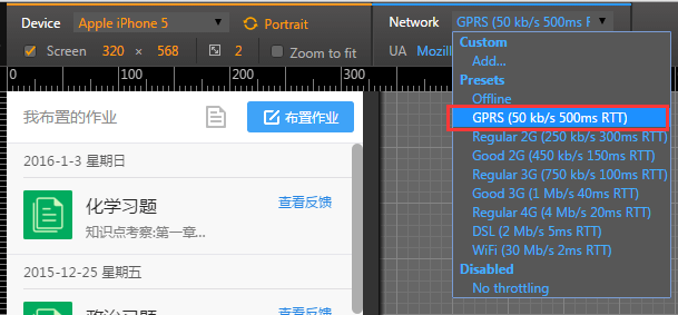 依然不对!因为CSS 文件的加载执行带来了干扰。觉得很奇怪对吧,别急,我们来做个试验:我们找一个 demo 页面,在 chrome 里面打开,然后启动控制台,模拟低网速,让文件加载时间比较久:QQ截图20160109180011