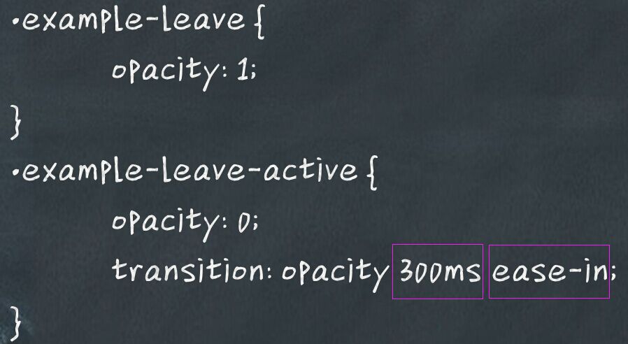 ②、动画持续时间需要被同时在 CSS 和渲染方法里被指定。这告诉 React 什么时候从元素中移除动画类,并且如果它正在离开,决定何时从 DOM 移除元素。