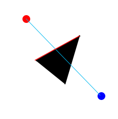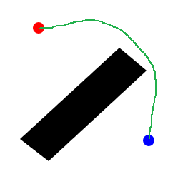 有一个不足,但也是一个很致命的不足,就是一旦起点或者终点就在障碍物的 AABB 内,而且这个 AABB 内很怪异的时候,会出现问题,下面举出例子