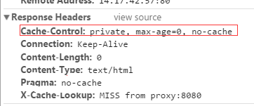 但是设置了 no-cache 之后并不代表浏览器不缓存,而是在缓存前要向服务器确认资源是否被更改。因此有的时候只设置 no-cache 防止缓存还是不够保险,还可以加上 private 指令,将过期时间设为过去的时间。
