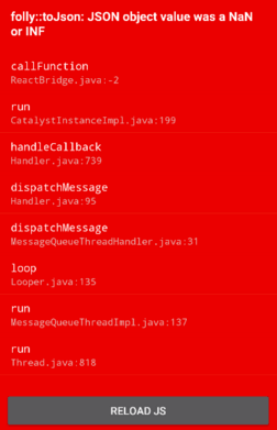 在 AndroidStudio 上打开 HelloAndroid/android 目录,等待 gradle 构建完毕后运行 HelloAndroid 程序,可以看到以下 ReactNatibe 经典报错 UI,这是因为我们还未连接上 react-native 的编译 bundle 文件而导致出现的错误页面。