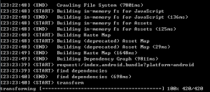当构建完毕,在浏览器中访问 http://localhost:8081/index.android.bundle?platform=android 可以看到我们编译好的 android bundle 文件。