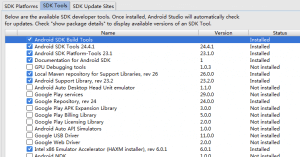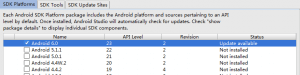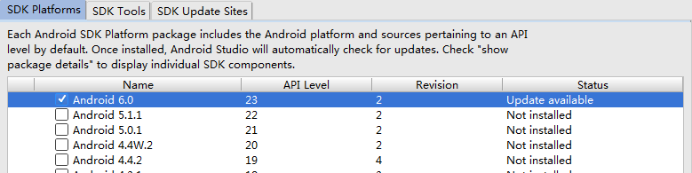 安装 Android Studio 完毕后,需要检查 Android SDK 是否齐全,对应需要的 SDK 如下所示: