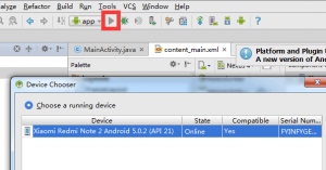 点击运行并在列表中选择调试的手机,确定后手机会自动安装我们的 HelloWorld 程序: