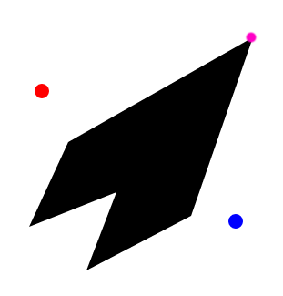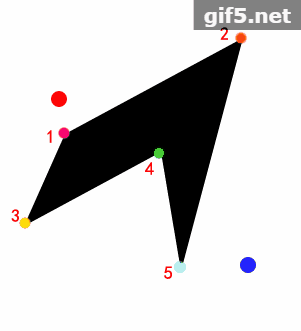 上文中我们绕过障碍物的核心是起点和终点的连线扫过障碍物,当障碍物为多边形的时候,扫过障碍物一定意味着最后是扫过了障碍物上的某一个点