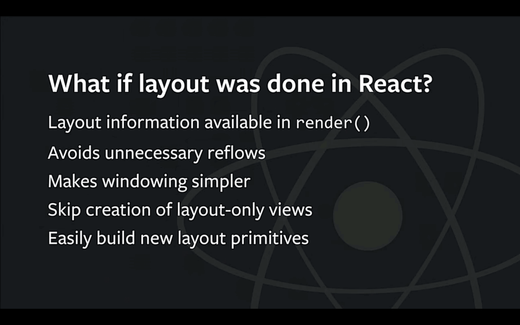我们的想法是,由 React 来管理布局如何?你们肯定觉得这想法很疯狂,我一开始也是这么觉得的。但仔细想想,这样做会带来什么改变: