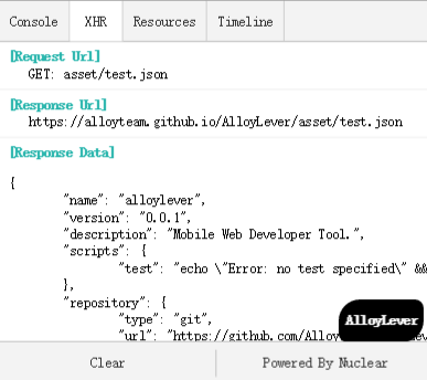 web 调试有几个非常频繁的刚需:看 log、看 error、看 AJAX 发包与回包。其他的如 timeline 和 cookie 以及 localstorage 就不是那么频繁,但是 AlloyLever 都支持。如你所见: