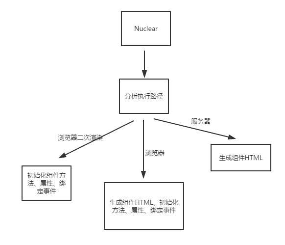 比如一般前后端分离的开发方式,仅仅会走中间那条管线。而同构的管线如下所示: