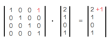 上面这个是一个单位矩阵(矩阵最基础的知识这里就不说了),我们用这个乘一个顶点 (2,1,0) 来看看