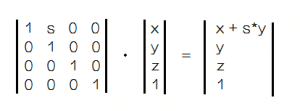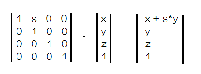 还有剪切 (skew) 效果的变换矩阵,这里用个 x 轴的例子来体现
