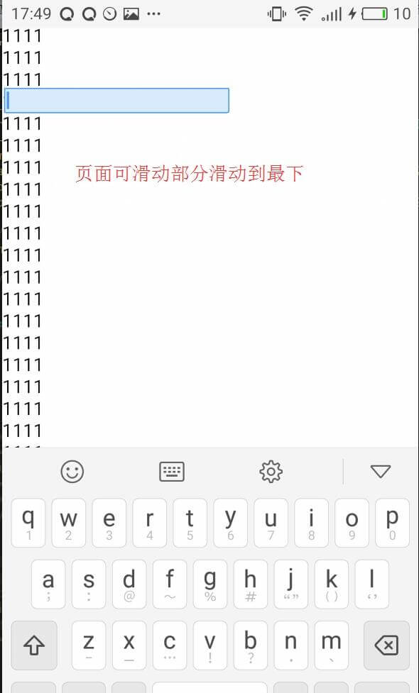 可以看出,键盘会将页面顶上去。那么如果希望可以将输入框和键盘完全贴合,我们可以使用 div 模拟一个假的输入框,使用定位将真正的输入框隐藏掉,当点击假的输入框的时候,将真正的输入框定位到键盘上方,并且手动获取输入框焦点。