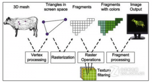 然后再看后两个图,很明显的 fragments 关键字指明了这是片元着色器阶段。Rasterization 是光栅化,从图上直观的看就是三角形用三条线表示变成了用像素表示,其实实际上也是如此,更详细的可以看下面地址,这里不进行展开。