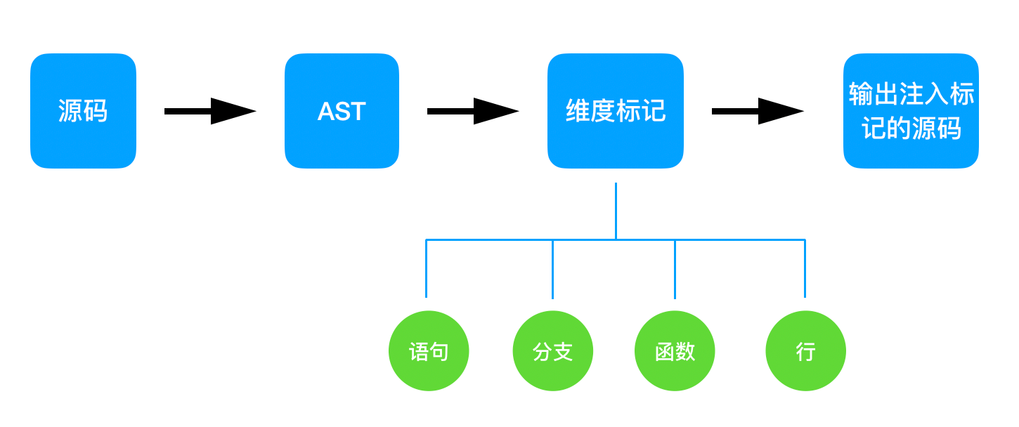 以上四个指标维度就是 Istanbul 最终要输出的结果,可以看出 Istanbul 的核心任务就是实现对这四个指标的计数器,它的内部实现流程大致可以分为以下三个步骤: