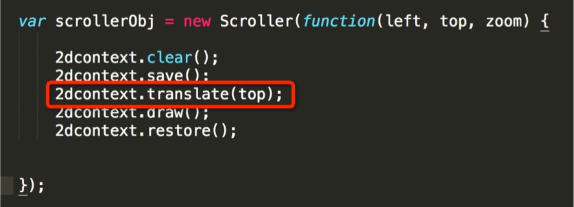 该组件不同于 iscroll 之类的组件,它不对实际元素进行移位操作,而是仅仅根据手势,实时返回一个当前的滚动距离值,结合组件改变绘制原点的使用示例: