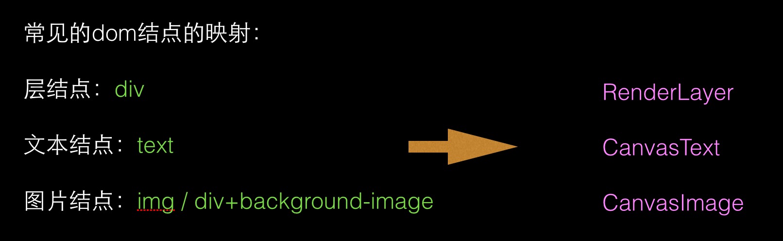 因此我们的第一步工作就是实现 dom 结点到 Canvas 绘制对象的映射。