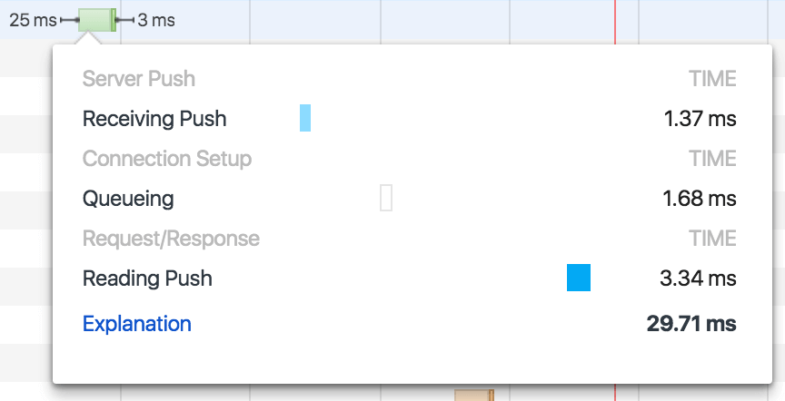 更进一步,如果把鼠标悬停在网络请求瀑布图中的资源上,将获得关于该推送资源的详细耗时信息: